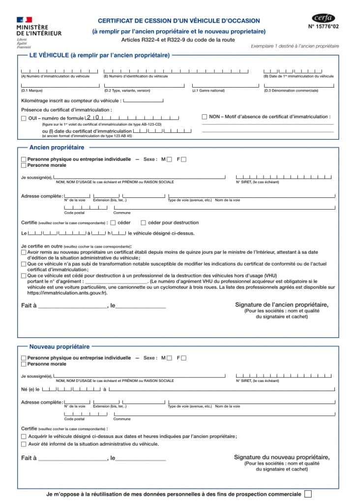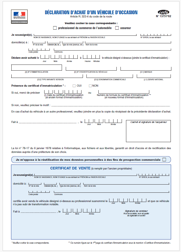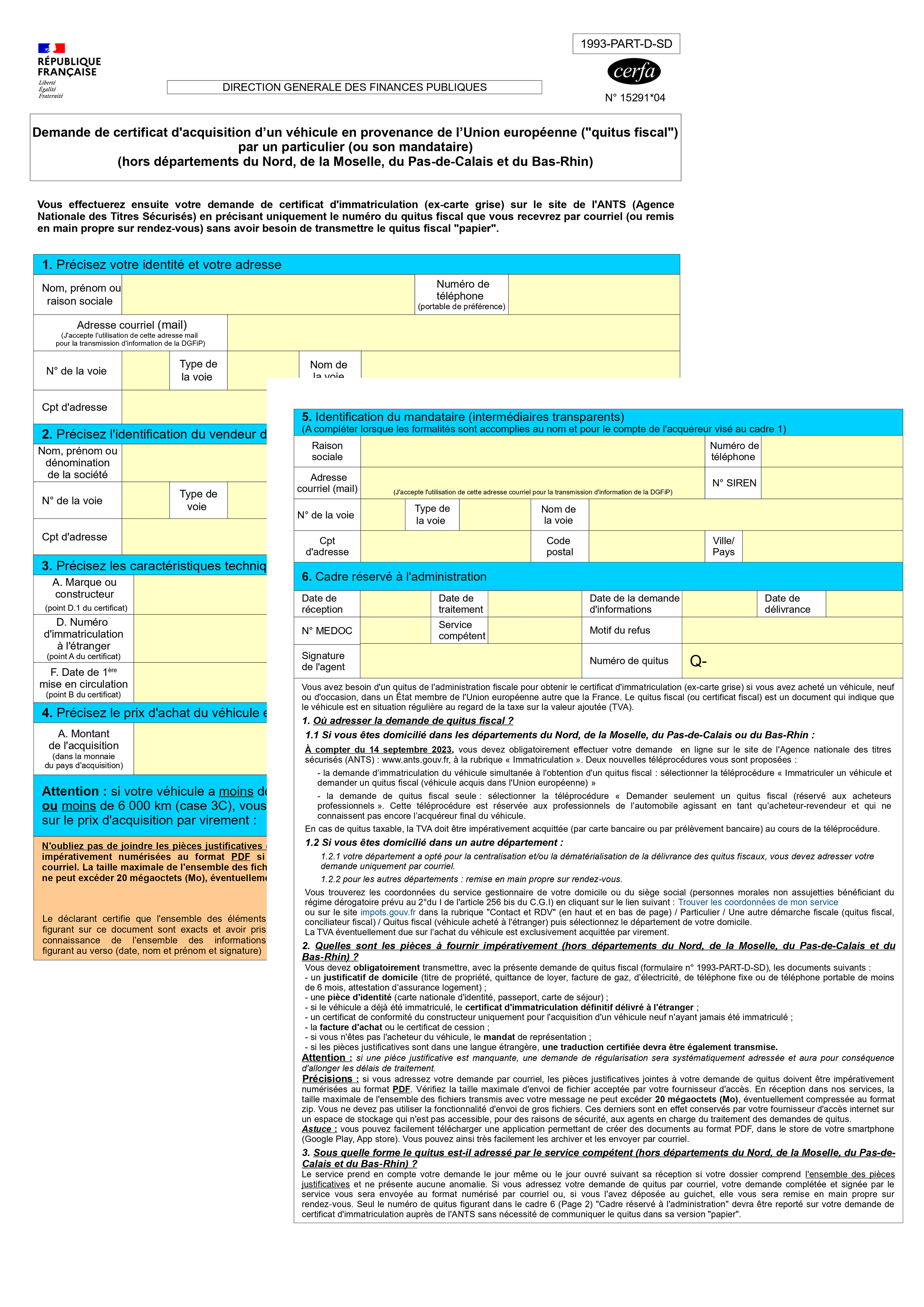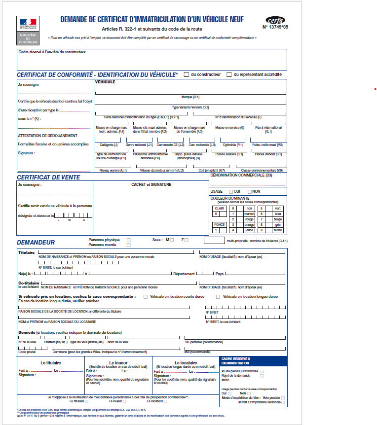 1ère immat. d’un véhicule ancien jamais immatriculé